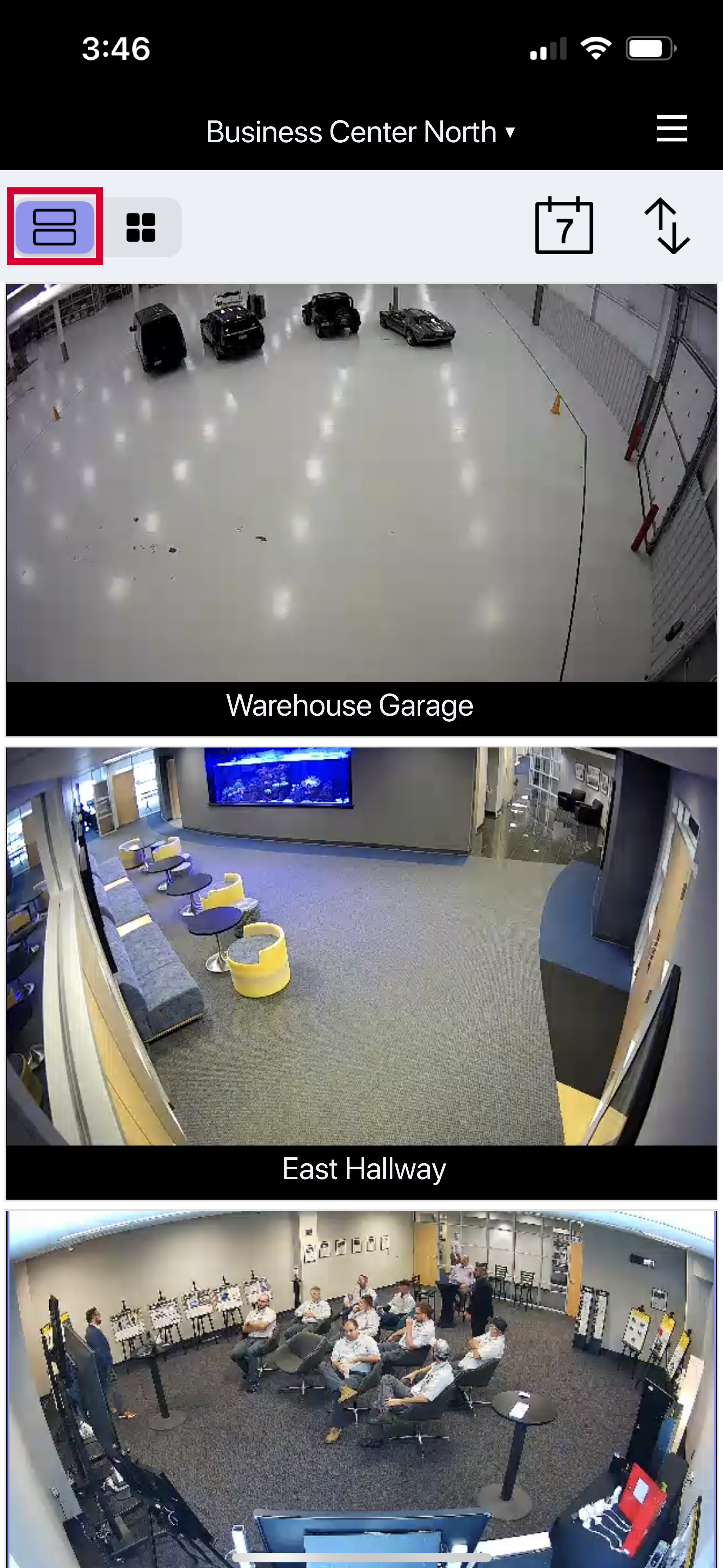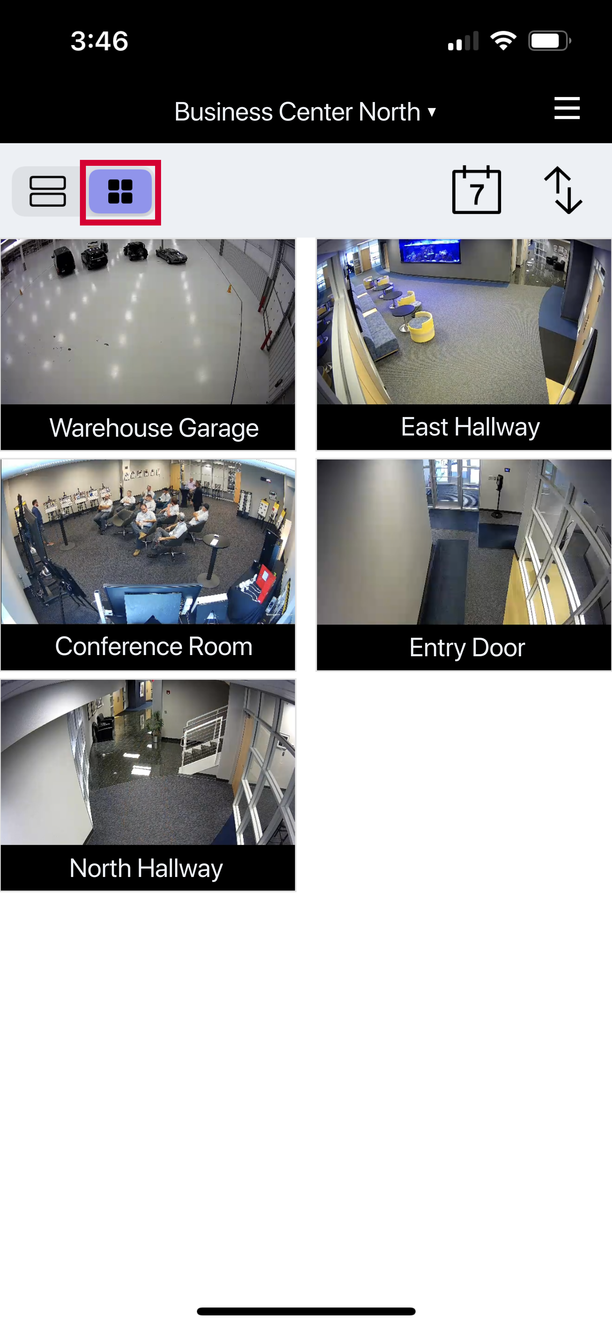 Go to Video, then select the Grid icon to see live video clips from multiple cameras in a grid format. Scroll down to see more cameras.
